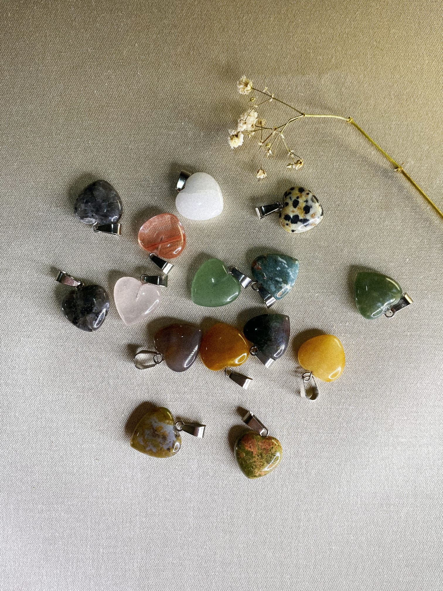 Permite que este colgante resalte tu estilo único, reflejando tu conexión con la naturaleza y tu aprecio por los símbolos espirituales. Deja que el diseño del corazón, junto con los minerales seleccionados, añadan un toque de elegancia y energía positiva a tu look diario.