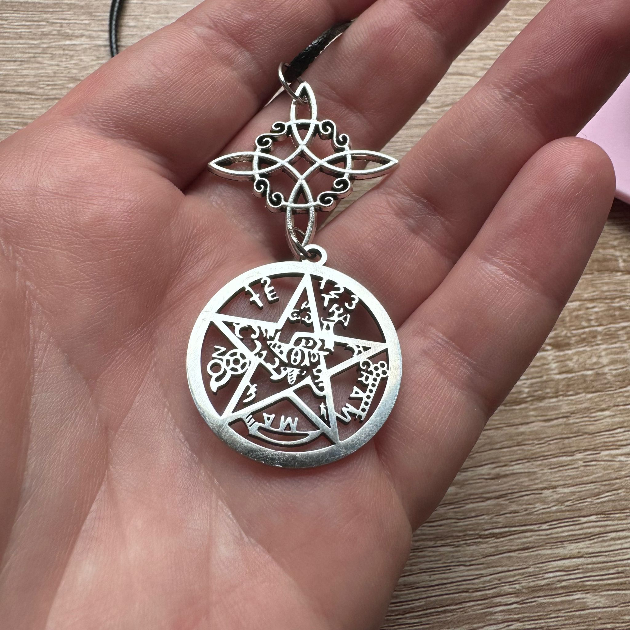 Colgante Doble Protección Nudo de Bruja + Tetragramatón