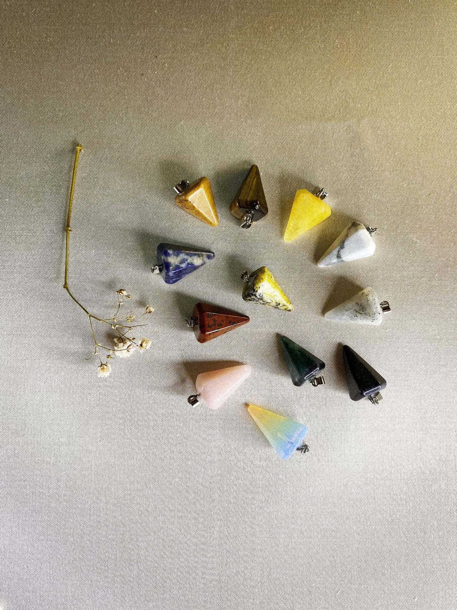 Permite que este colgante resalte tu estilo personal, reflejando tu conexión con la naturaleza y tu aprecio por los símbolos espirituales. Deja que el diseño del péndulo, junto con los minerales seleccionados, añadan un toque de elegancia y energía positiva a tu look diario.