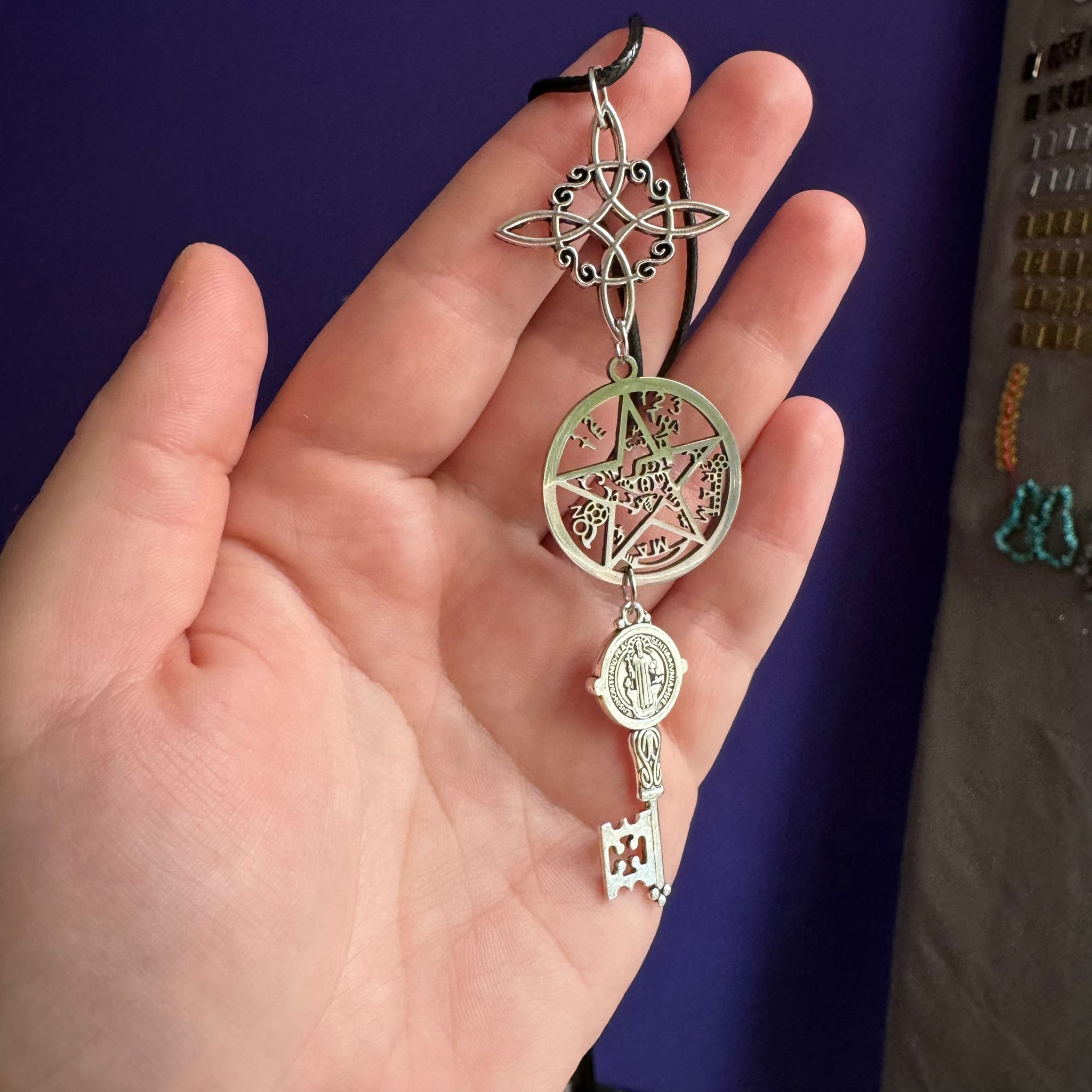 Este colgante no solo es una pieza de joyería elegante, sino también un potente talismán que te acompaña en tu camino espiritual. Al combinar los símbolos que elijas, potencias su energía y creas un escudo protector único para ti.