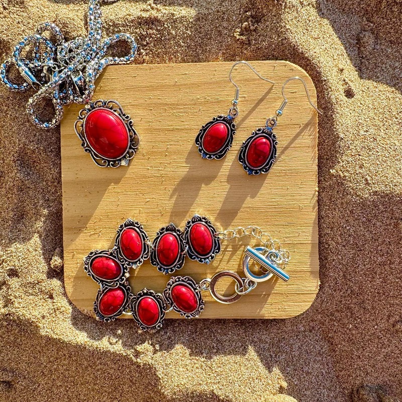 El Conjunto de Joyas de Piedra Roja Natural no es solo un conjunto de joyas; es una expresión de tu estilo y sofisticación, combinando la belleza natural y el diseño retro en una armonía perfecta.