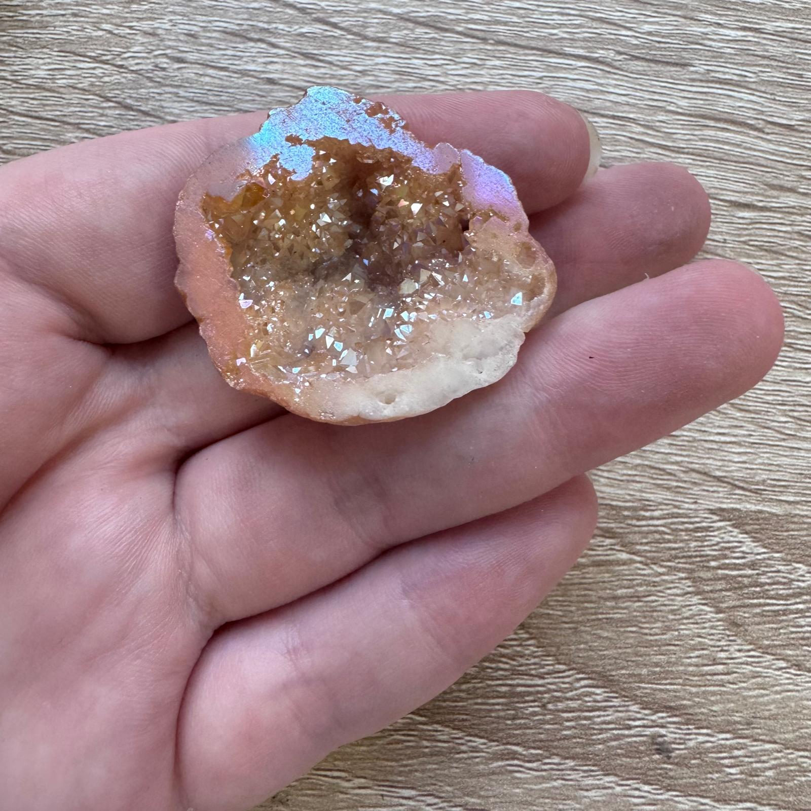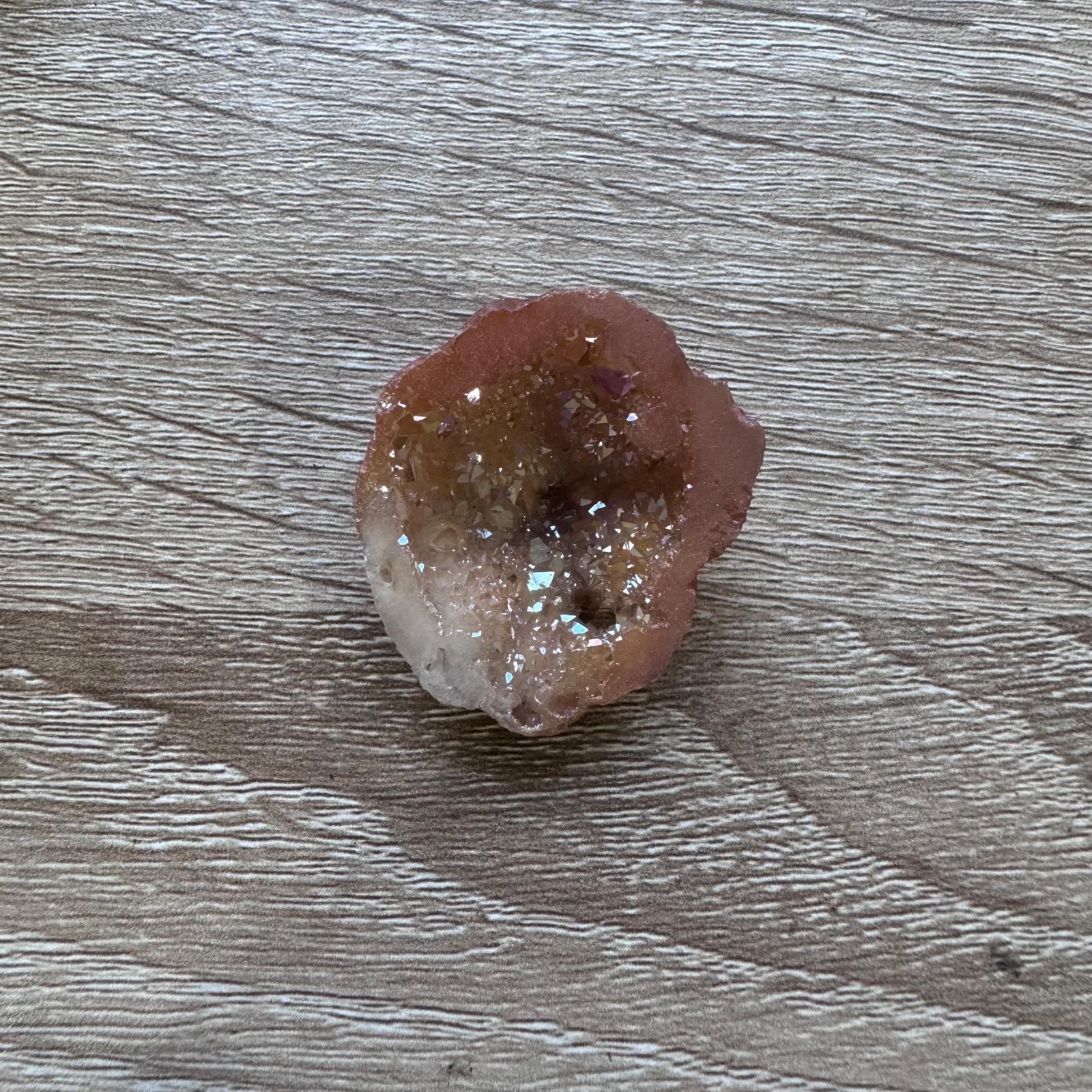 Esta geoda mitad salmón es más que un adorno; es una fuente de energía suave y reconfortante que te acompaña en tu proceso de sanación emocional y bienestar.