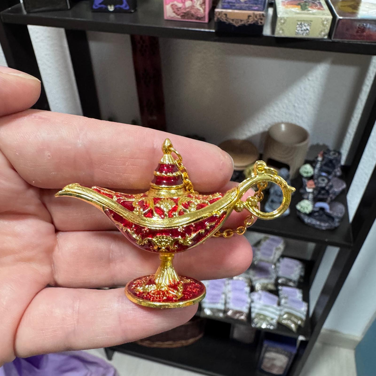 Haz realidad tus intenciones con nuestro INCENSARIO LÁMPARA DE LOS DESEOS – DORADO Y ROJO. Pequeño, potente y lleno de simbolismo, este incensario en forma de lámpara mágica es ideal para quemar conos o varillas de incienso. Su diseño en tonos dorados y rojos evoca abundancia, magia y manifestación, convirtiéndolo en el complemento perfecto para rituales, meditaciones o espacios sagrados.