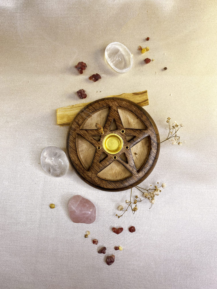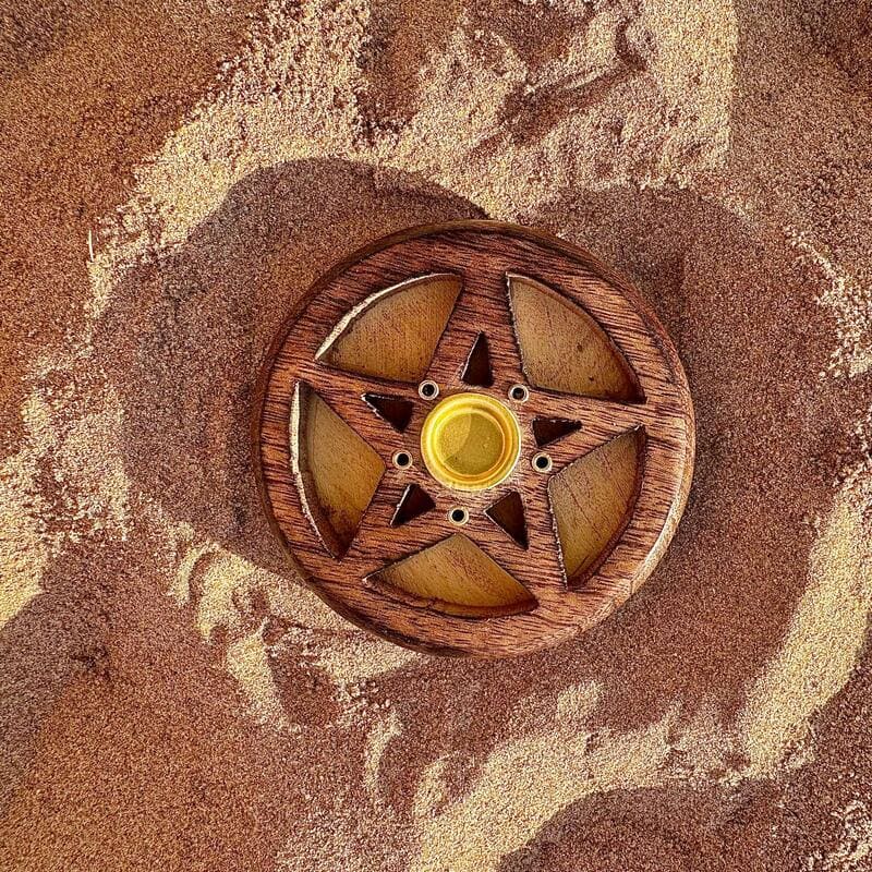INCIENSARIO REDONDO DE MADERA PENTAGRAMA