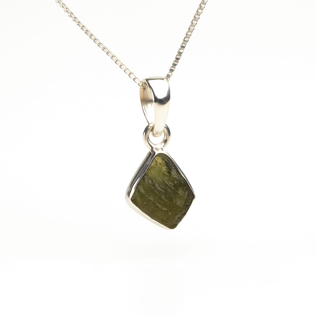 Moldavita auténtica recubierta en plata de ley 925. Esta rara tektita de