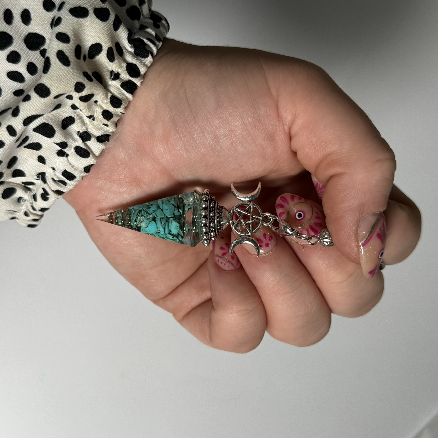 Fabricación de Alta Calidad: Elaborado con cristal natural de turquesa y resina triturada de alta calidad, cada péndulo es único y hecho para durar.