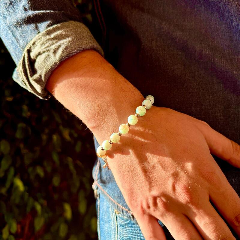 Dije de Cruz: La pulsera está adornada con un elegante dije de cruz, un símbolo universal de fe y protección. Este detalle añade un toque espiritual y significativo a la pieza, haciéndola perfecta para quienes buscan una joya que también tenga un profundo simbolismo.