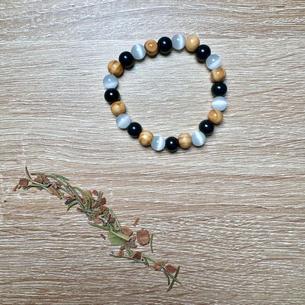 Descubre la potente combinación de protección y purificación con esta pulsera de selenita, turmalina negra y palo santo. Diseñada para equilibrar y proteger tu campo energético, este accesorio es ideal para quienes buscan mantener una vibración alta y alejar las energías negativas.